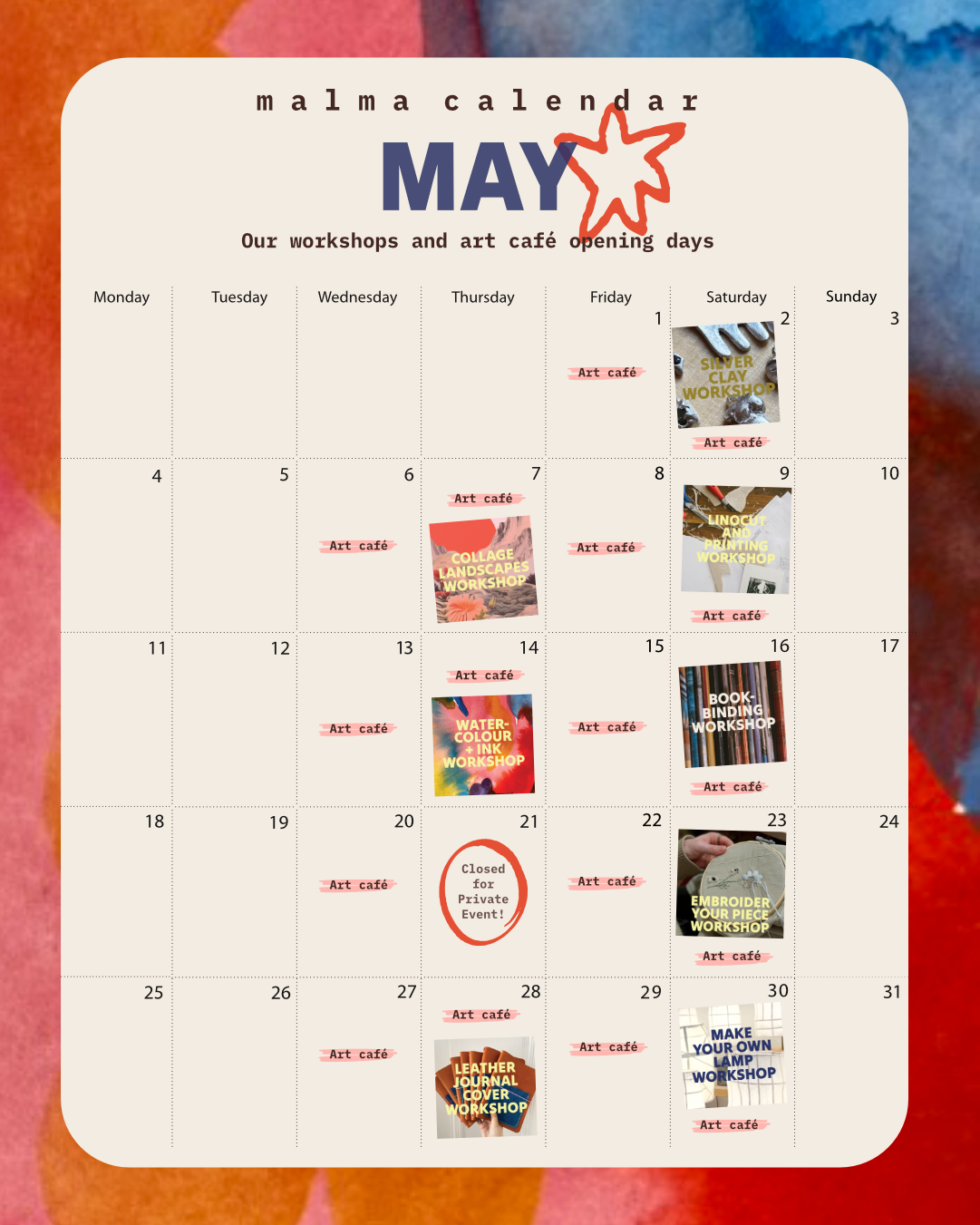 Monthly Workshop Calendar