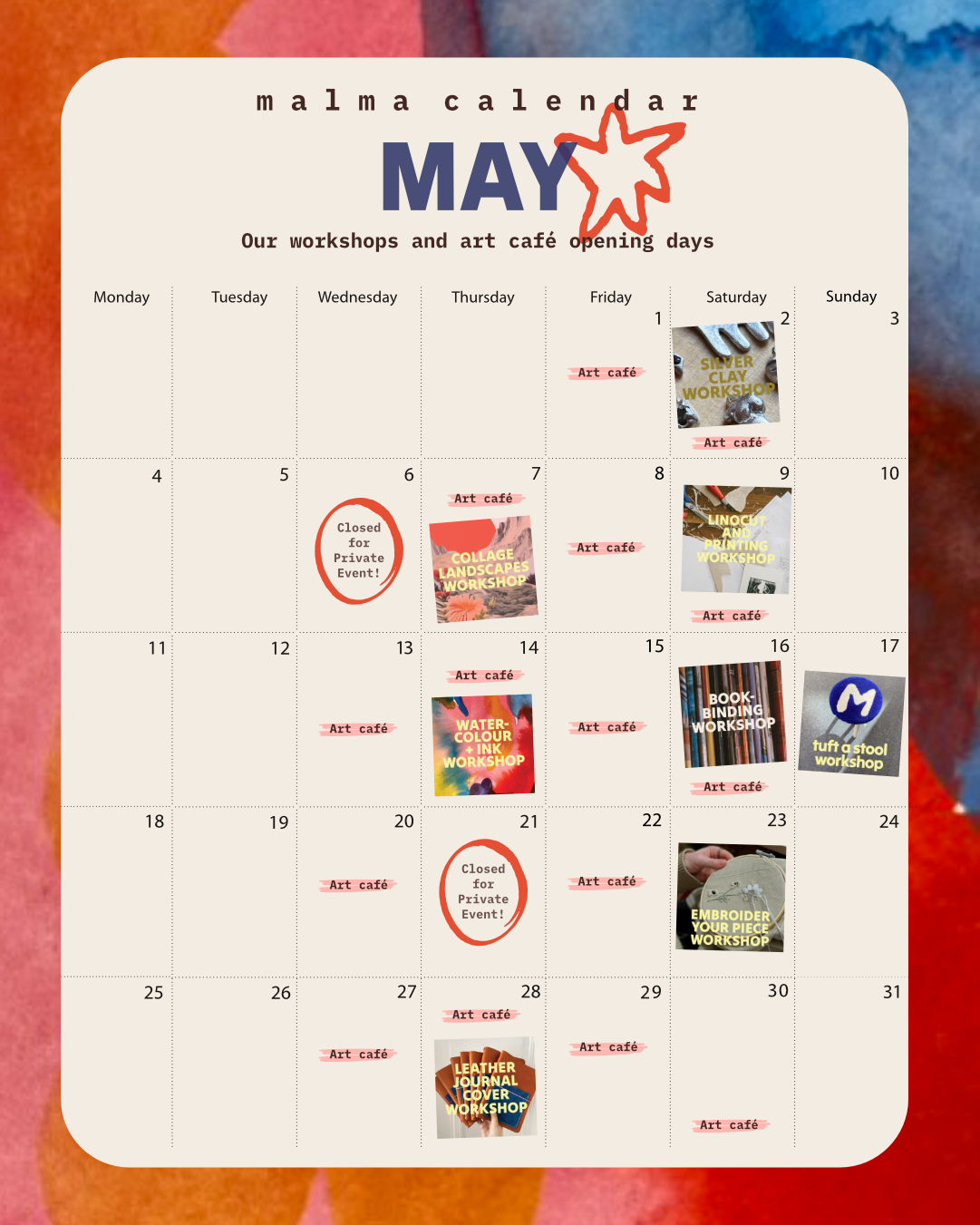Monthly Workshop Calendar